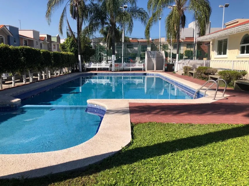 Las amenidades del condominio comprenden una casa club, asadores, parque infantil, cancha de tenis, alberca y servicio de vigilancia las 24 horas. El mantenimiento, valorado en $800.00 pesos, se encuentra incluido en el costo de la renta.