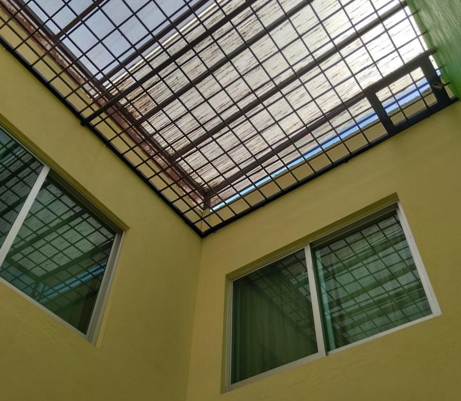 PLANTA BAJA: COCHERA DOS AUTOS TECHADA, MALLA ELECTRIFICADA DE SEGURIDAD.